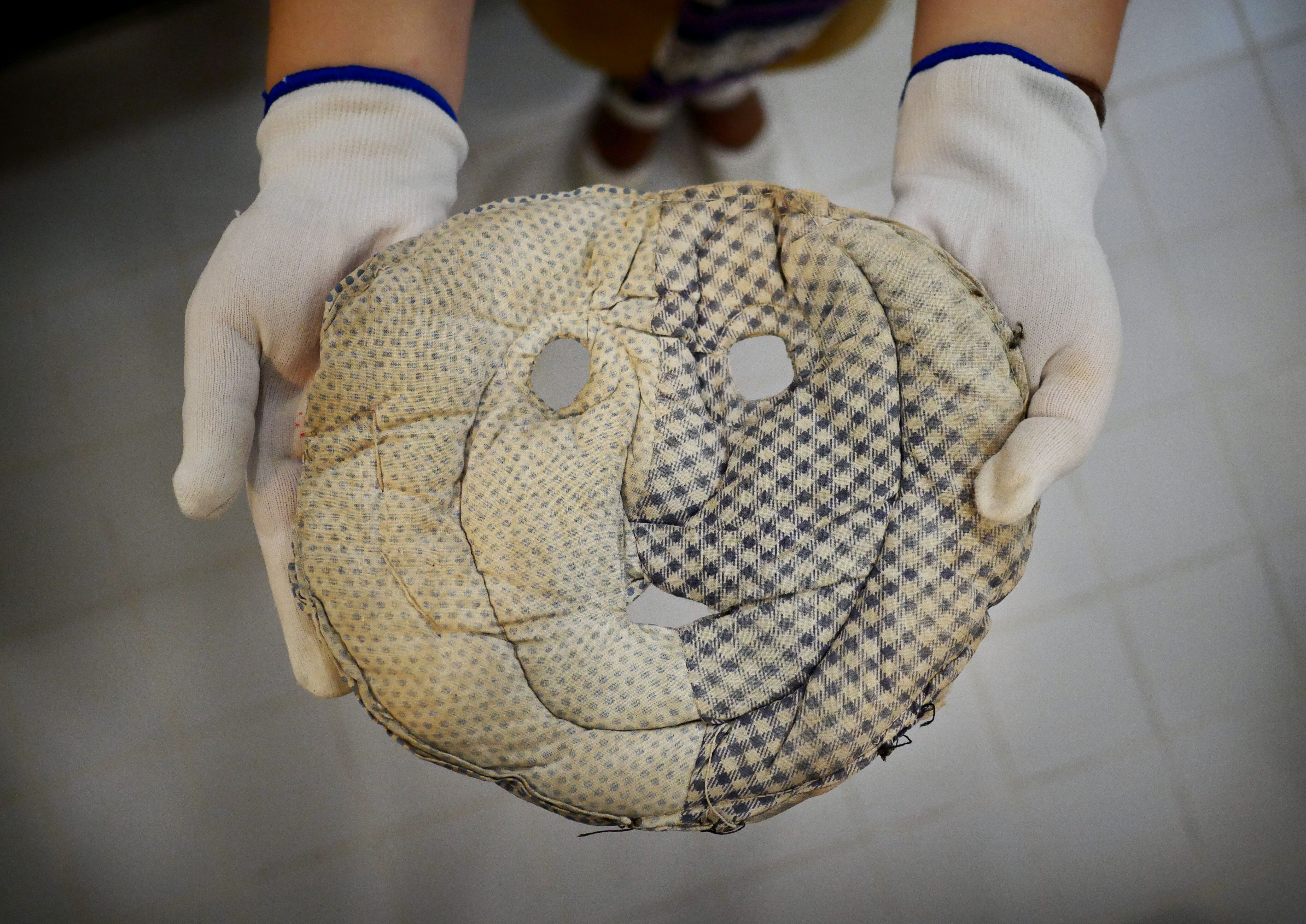 В самом большом музее в расположенном неподалеку Салехарде корреспонденту Радио Свобода сказали, что постоянной экспозиции, посвященной "дороге смерти", в музее нет. Однако сотрудники музея показали некоторые принадлежавшие заключенным предметы, которые хранятся в запасниках. Эта сшитая из клочков ткани маска спасала зимой от обморожения.