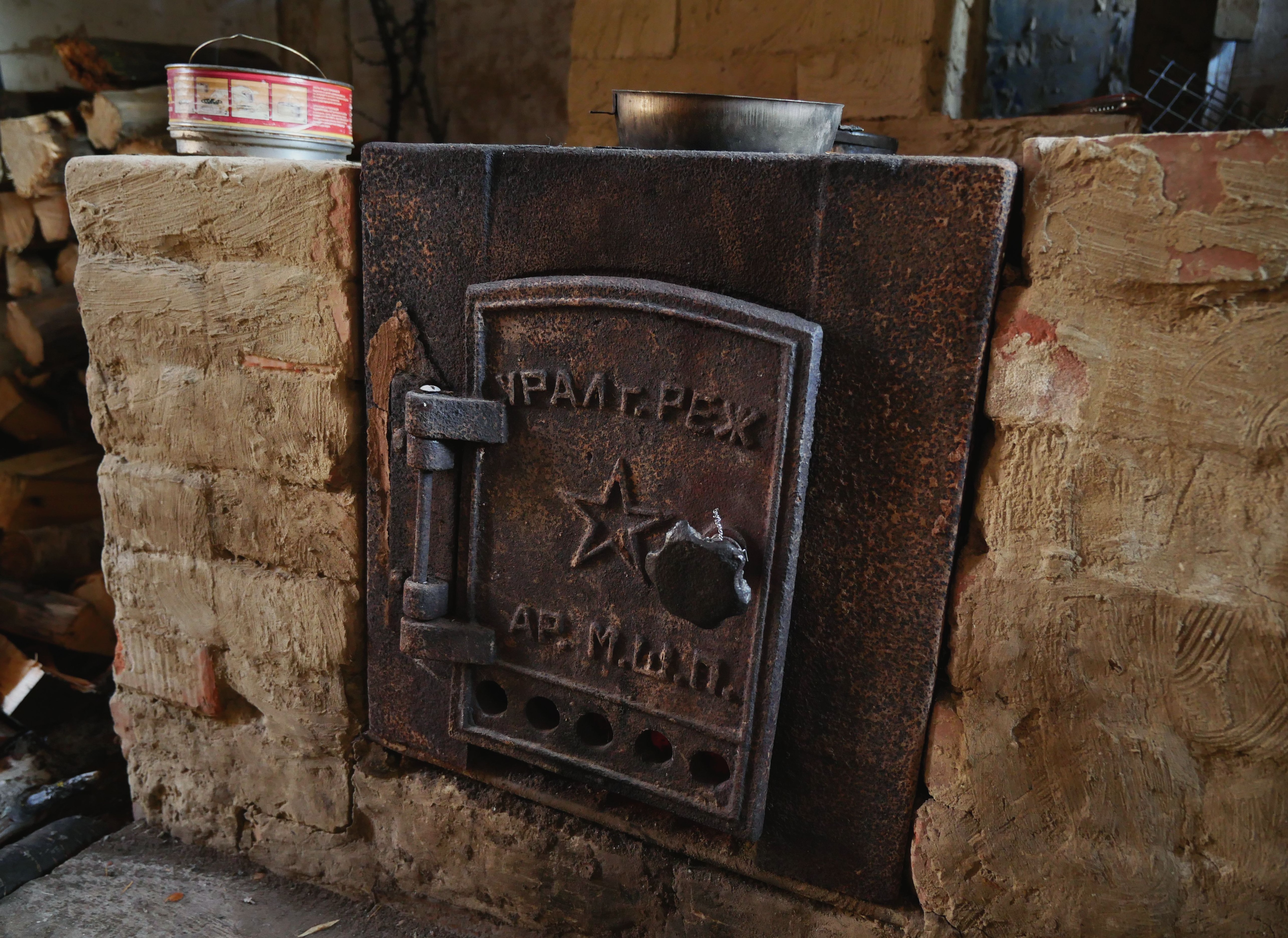 Внутри печка-мазанка с чугунной печкой-плитой на угле и звездой сталинских времен. В осенние вечера она неплохо отапливает дом.